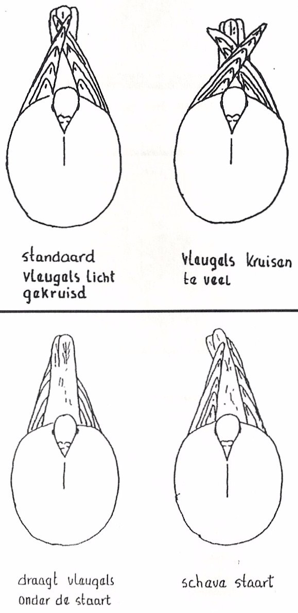 de borstdiepte naar voren, de staart zien wij graag tot ooghoogte gedragen.